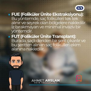 Saç ekimi konusunda temelde 2 tedavi yöntemi vardır. Bunlar FUT ve FUE’dur. Bu yöntemlerden en eskisi FUT iken bu yöntem gelişerek olumsuzluklarının en aza indirilmesi durumunda FUE yöntemi daha çok önem kazanmaya başlamıştır.